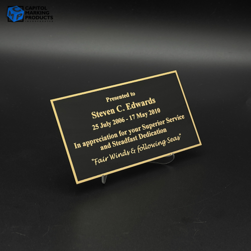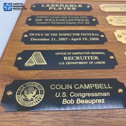 Engraving plates are the perfect way to personalize and complete the look of any award or plaque. We offer a variety of colors, sizes, and styles which can be customized to suit your needs.