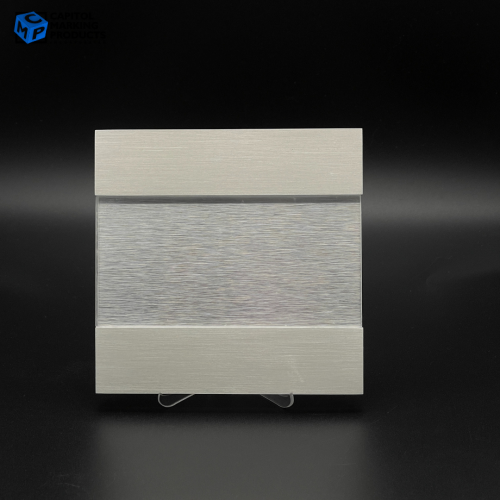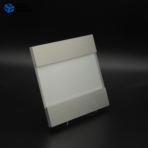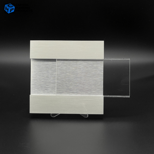 - Materials: Satin Silver Brushed Aluminum with Clear Acrylic Sliding Window